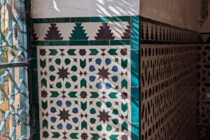 The term alicatado (from Arabic al-qata, “the cut”) describes the Spanish tradition of cut-tile mosaics. The Nasrid palaces of the Alhambra in Granada, dating from the 13th to the 15th century, represent a high point in the cultural expression of al-Andalus, featuring mosaics, plasterwork, and wood carving. The Alcazar in Seville is another stunning example of islamic design.