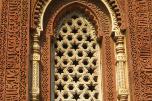 Geometric patterns in Islamic art mainly involve straight-edge shapes that tesselate and repeat endlessly to create complex, multi-layer patterns. However, there are some examples of patterns with curved shapes, and patterns that don’t repeat but radiate from a central point.