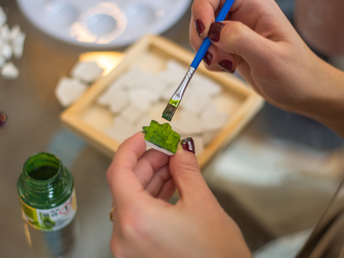 - 20-30 handcrafted clay tiles ready to paint and assemble